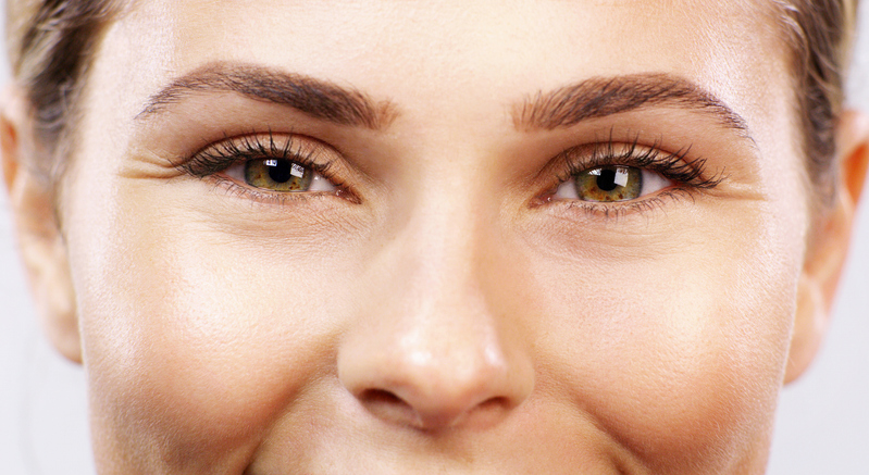 A close up of a womans face showing well defined and natural looking eyebrows achieved through expert micropigmentation services at Look Natural Micropigmentation