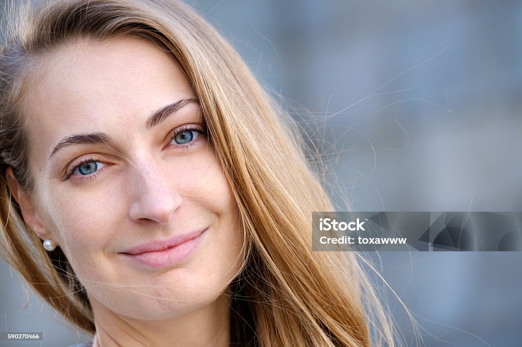 A close up portrait of a woman with blue eyes and naturally shaped eyebrows radiating a fresh and confident appearance